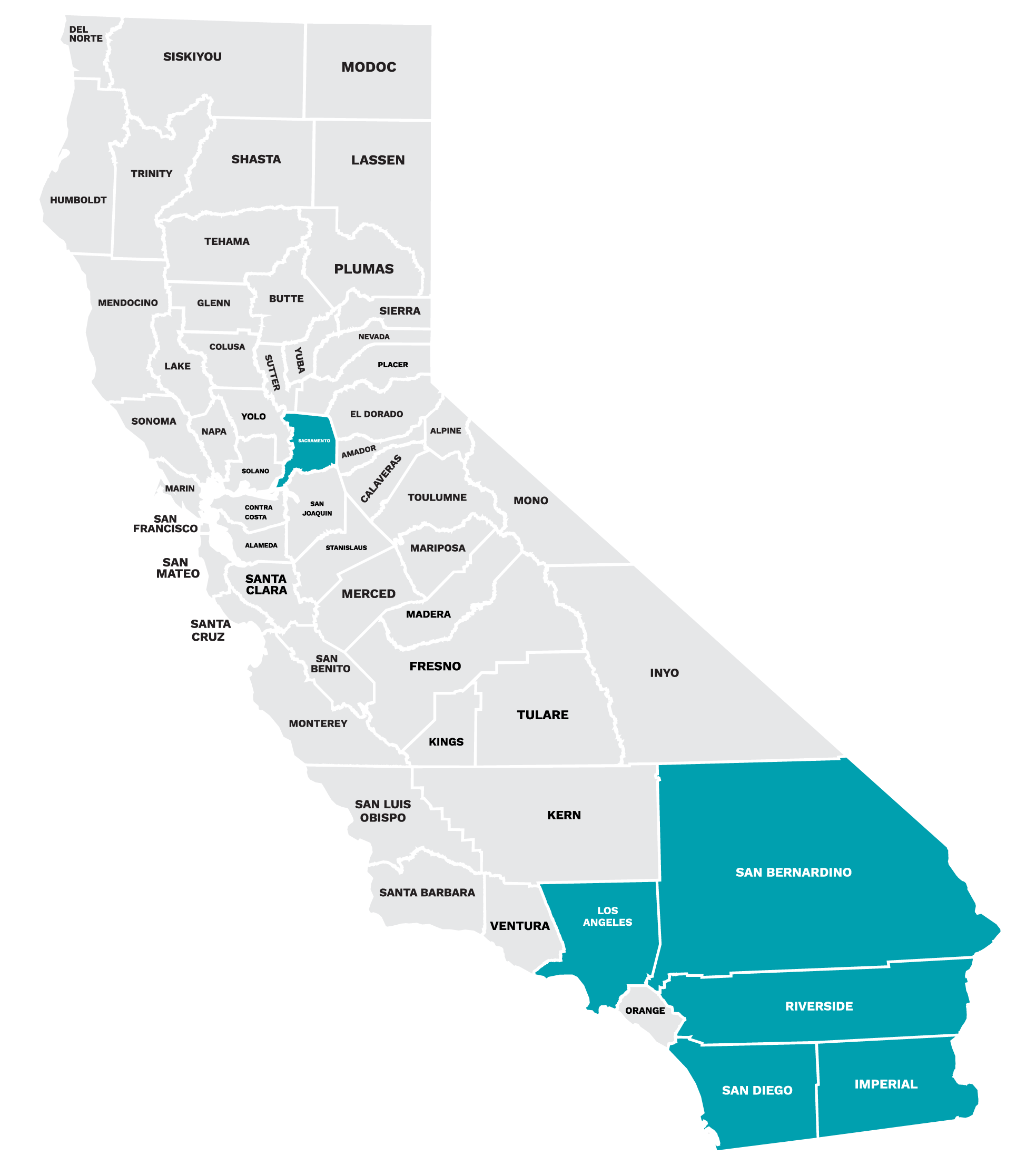 Molina Medicare Complete Care (HMO D-SNP) – Imperial*, Los Angeles, Riverside*, Sacramento, San Bernardino* and San Diego counties.